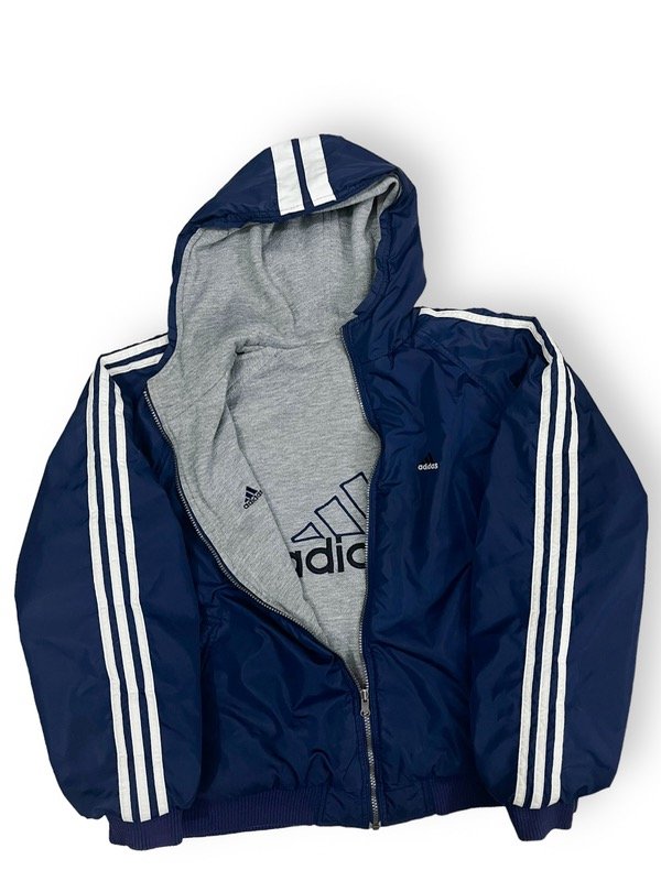 CAMPERON ADIDAS BIG LOGO REVERSIBLE ORIGINAL E IMPORTADA EN EXCELENTE ESTADO LOGOS BORDADOS IMPERMEABLE DE UN LADO, ABRIGO DEL OTRO. MINIMO DESGASTE DE USO. TREMENDA PRENDA SÚPER BUSCADA. UNA JOYITA.
