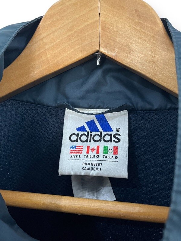 ROMPEVIENTOS ADIDAS BIG LOGO BORDADO EN LA ESPALDA ORIGINAL E IMPORTADA EN PERFECTO ESTADO SIN NINGÚN TIPO DE DETALLES ESTA IMPECABLE. BOLSILLOS LATERALES. LOGO BORDADO AL FRENTE. COLOR AZUL PETROLEO. UNA JOYITA RETRO DE LOS 90s.