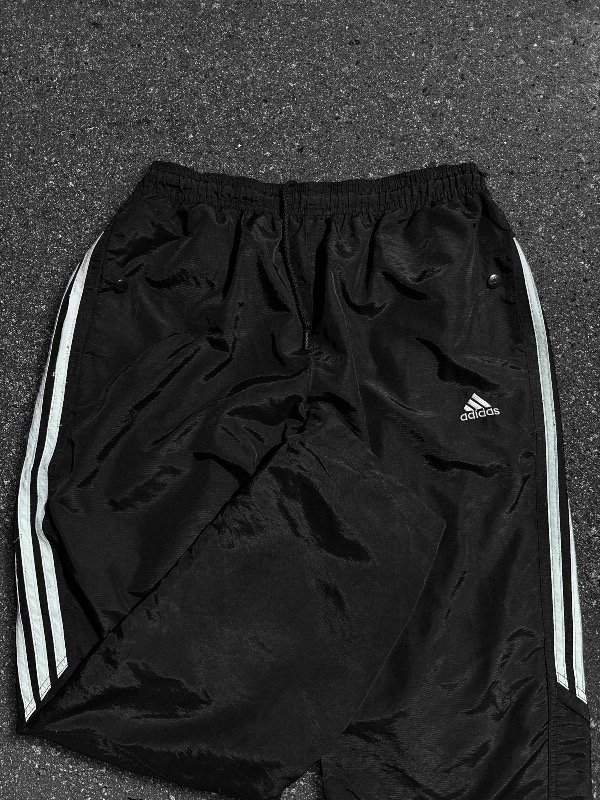 TREMENDO PANTALÓN ADIDAS VINTAGE ROMPEVIENTOS. BOTONES ADIDAS ORIGINALES. LOGO BORDADO. BOLSILLOS LATERALES. CINTURA AJUSTABLE.