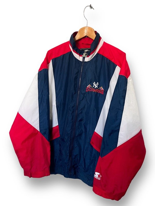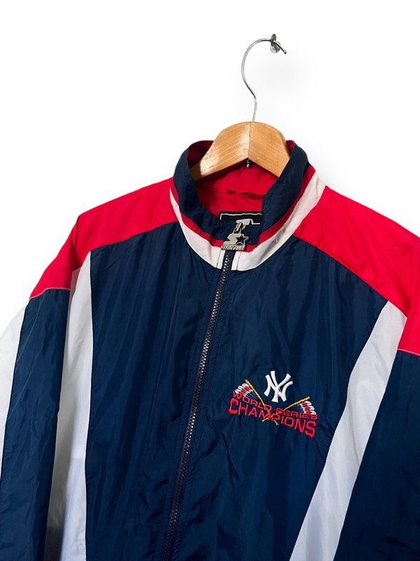EDICIÓN LIMITADA STARTER DE LOS NEW YORK YANKEES WORLD SERIES CHAMPIONS UNA LOCURA DE ROMPEVIENTOS ORIGINAL E IMPORTADA EN PERFECTO ESTADO SIN NINGÚN DETALLE ESTA IMPECABLE. LOGO BORDADO EN EL PUÑO. TIRANTE ORIGINAL CON LOGO. LOGO BORDADO EN LA ESPALDA Y DISEÑO SÚPER ÚNICO. EPICA.
