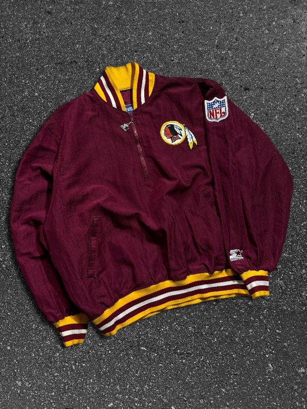 LOCURA DE ANORAK RETRO ORIGINAL E IMPORTADO EN PERFECTO ESTADO STARTER DE LOS 90s LOGOS BORDADOS. TELA ROMPEVIENTOS IMPERMEABLE. TIRANTE STARTER DE METAL, CIERRE ORIGINAL. BOLSILLOS LATERALES.