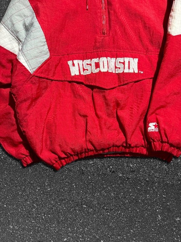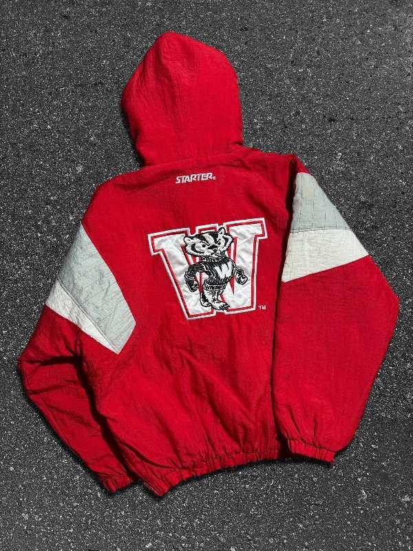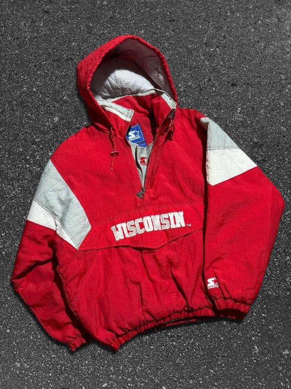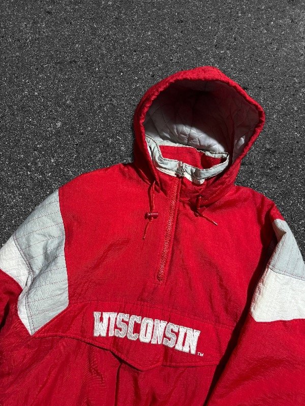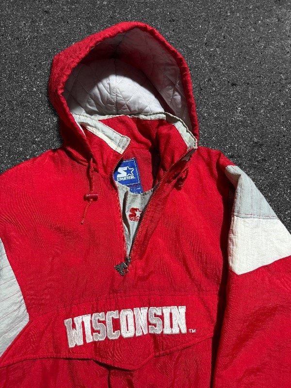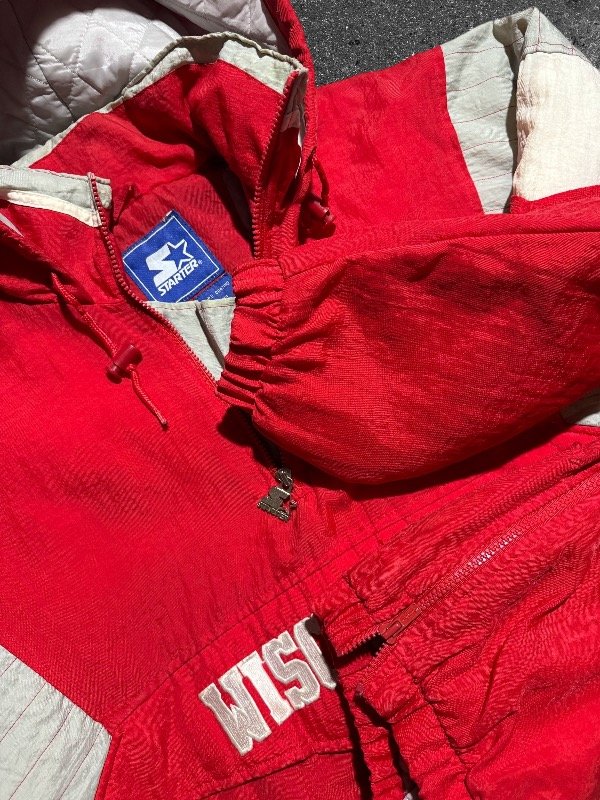 LOCURA DE ANORAK STARTER ORIGINAL DE WISCONSIN. IMPORTADO. EN PERFECTO ESTADO SIN DETALLES. ESTÁ COMO NUEVO. CIERRE LATERAL Y PRINCIPAL CON TIRANTE ORIGINAL STARTER METÁLICO. LOGOS BORDADOS.TELA IMPERMEABLE. UNA JOYITA.