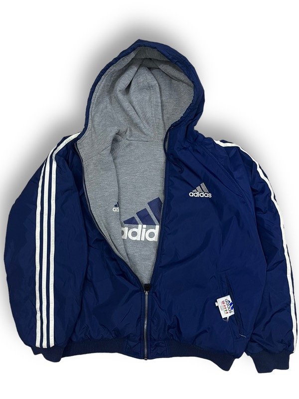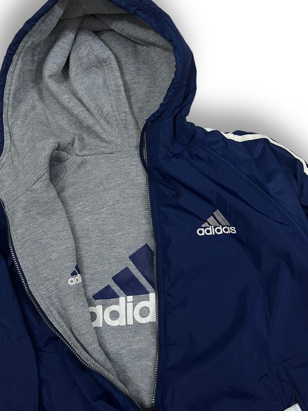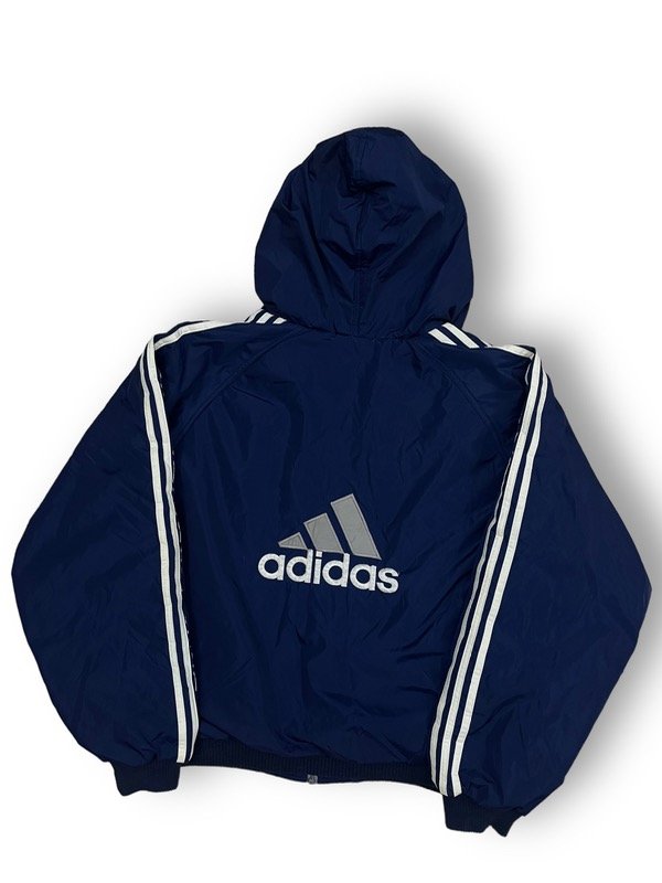 EPICA CAMPERA ADIDAS BIG LOGO REVERSIBLE. BIG LOGO DE LOS DOS LADOS. ORIGINAL DE LOS 90s SIN DETALLES IMPECABLE UNA JOYITA. DE UN LADO IMPERMEABLE, DEL OTRO LADO TIPO JOGGING. CIERRE ORIGINAL CON TIRANTE ORIGINAL DE ADIDAS. SÚPER ABRIGADA.