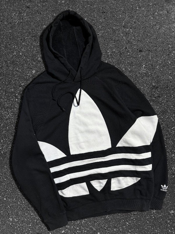 ÉPICO ADIDAS ORIGINALS GIANT TREFOIL HOODIE ORIGINAL E IMPORTADO EN PERFECTO ESTADO SIN DETALLES IMPECABLE COMO NUEVO. UNA JOYITA. ESTÁ REALMENTE IGUAL A NUEVO, LOGO BORDADO EN EL PUÑO. TELA Y COLOR COMO NUEVO.