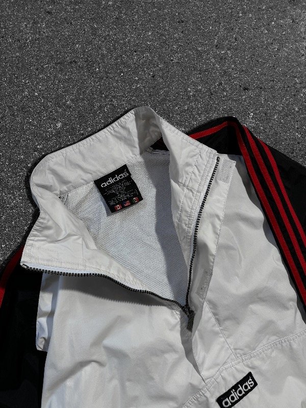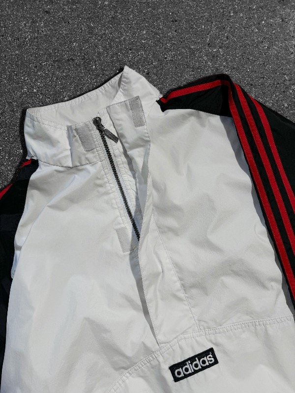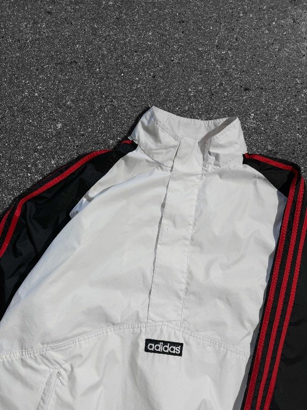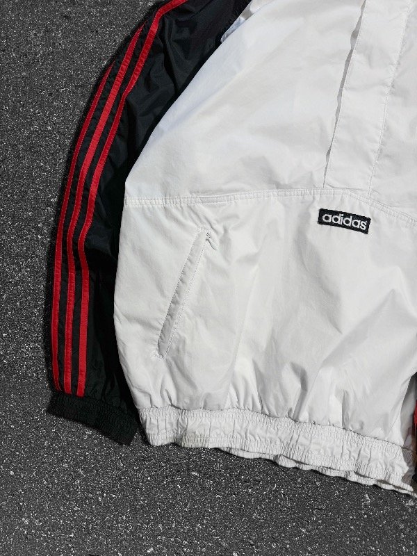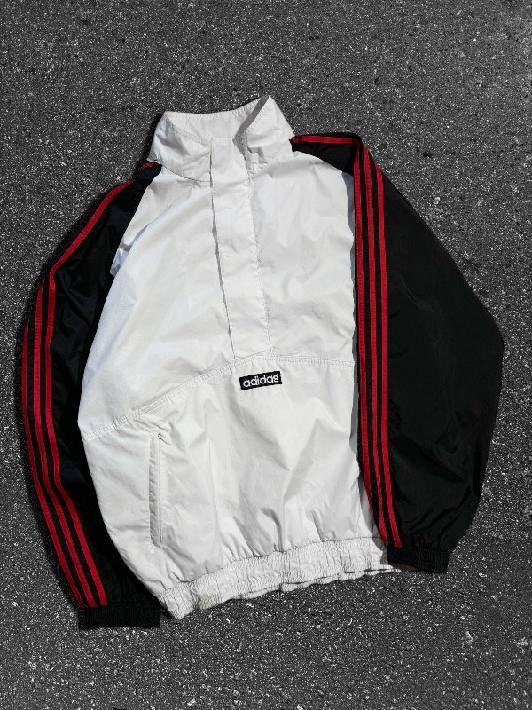 ÉPICO ANORAK ROMPEVIENTOS ADIDAS VINTAGE DE LOS 1990s ORIGINAL E IMPORTADO EN PERFECTO ESTADO SIN DETALLES IMPECABLE. CENTER LOGO. BOLSILLO CENTRAL. TIRANTE ADIDAS ORIGINAL DE METAL UNA JOYITA.