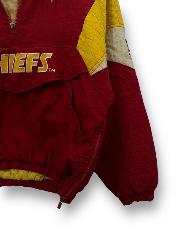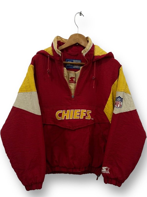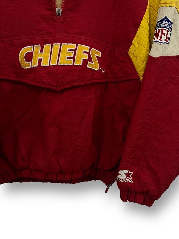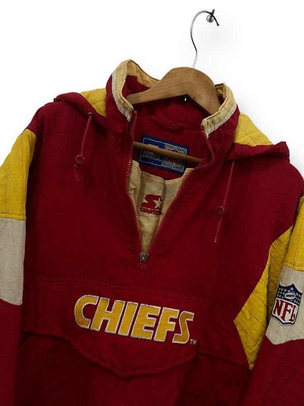 TREMENDO ANORAK DE LOS KANSAS CITY CHIEFFS STARTER ORIGINAL E IMPORTADO EN EXCELENTE ESTADO COMO SE VE EN LAS FOTOS UNA JOYITA. ABRIGADO. LOGOS BORDADOS, COLORES ÉPICOS. ESTA ÉPICO. UNA BOMBA. CINTURA AJUSTADA TIPO BOMBER.