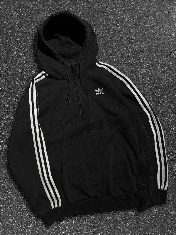 TERRIBLE BUZO ANORAK ADIDAS ORIGINALS CON TREFOIL BORDADO ORIGINAL E IMPORTADO EN PERFECTO ESTADO SIN DETALLES IMPECABLE. TIRANTE DEL CIERRE CON LOGO TREFOIL. BOLSILLOS LATERALES.