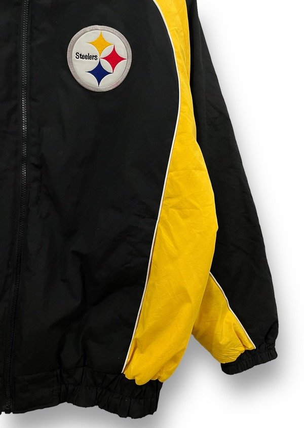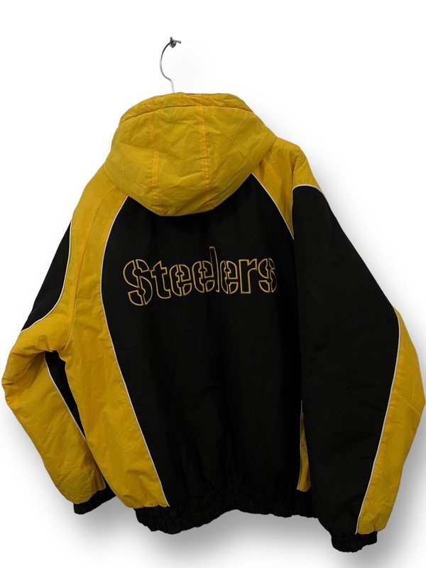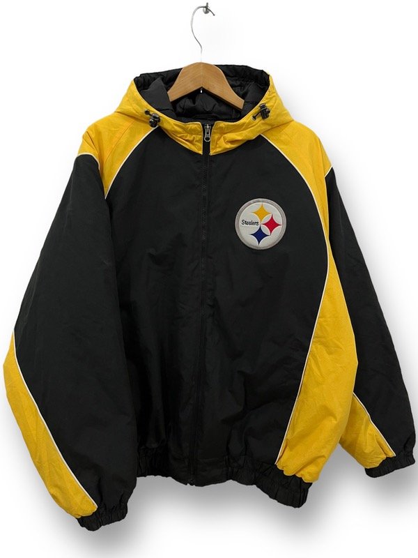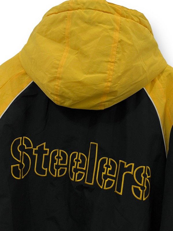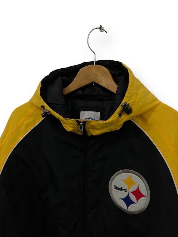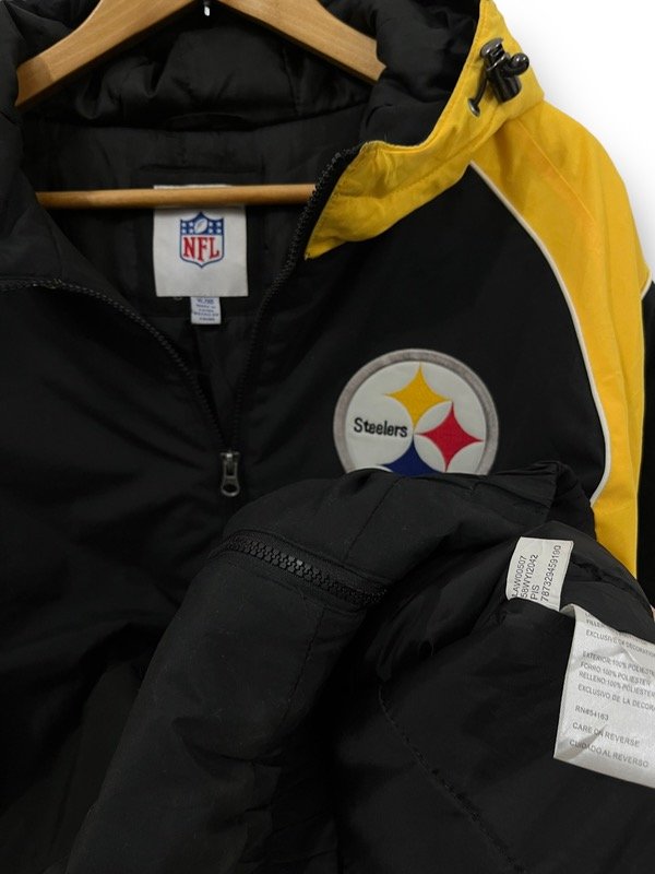 TREMENDO CAMPERON DE LA NFL DE LOS STEELERS ORIGINAL E IMPORTADO EN PERFECTO ESTADO UNA JOYITA SÚPER ABRIGADA CON CAPUCHA. UNA LOCURA DE COLORES. ESTA TREMENDO. LOGOS BORDADOS BIG SPELLOUT ATRÁS BORDADO.