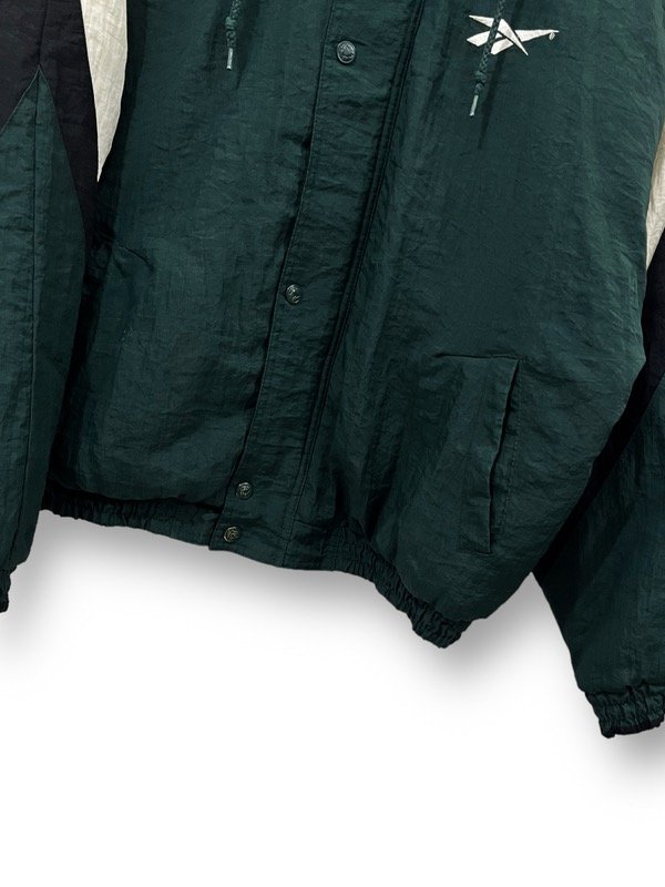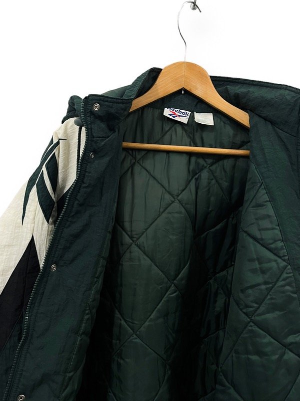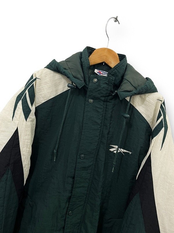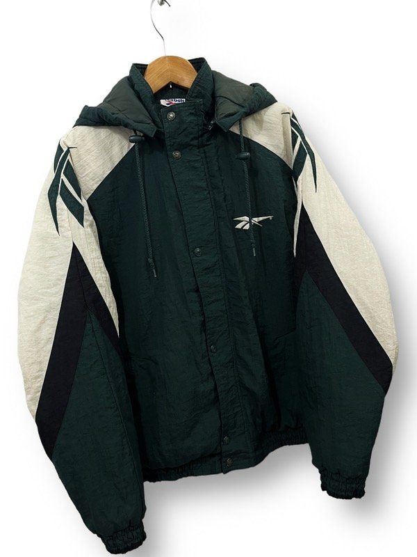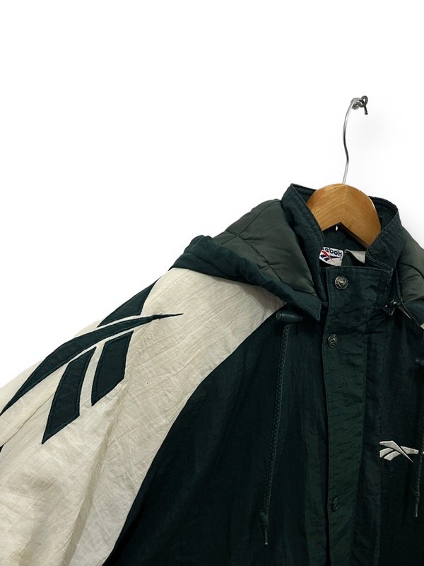 CAMPERON DE ABRIGO REEBOK VINTAGE DE LOS 90s ORIGINAL E IMPORTADO EN PERFECTO ESTADO BIG LOGOS EN LOS HOMBROS BORDADOS. TELA COMPLETAMENTE IMPERMEABLE. SÚPER ABRIGADA. BOLSILLOS LATERALES. CAPUCHA GRANDE DESMONTABLE. UNA JOYITA.