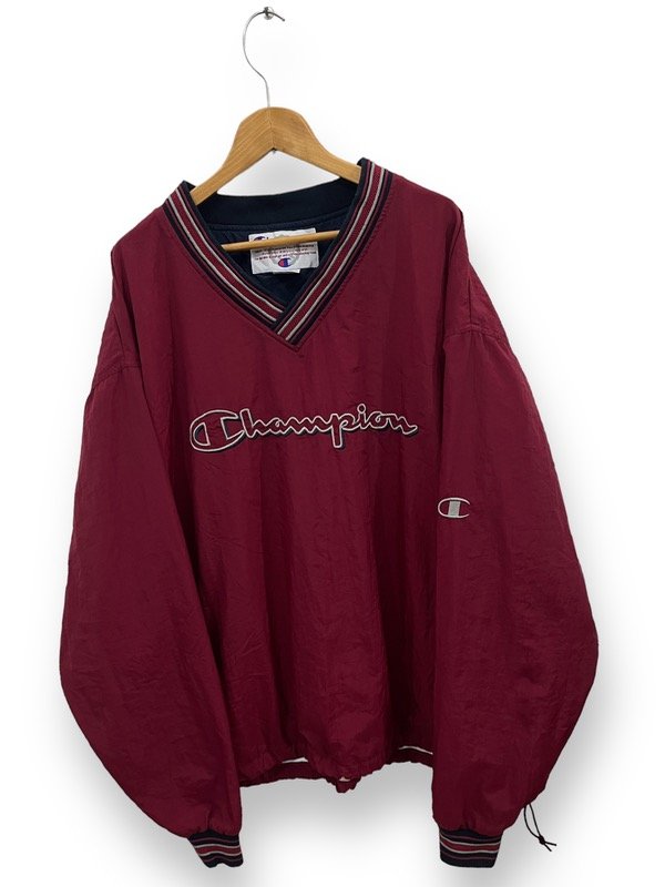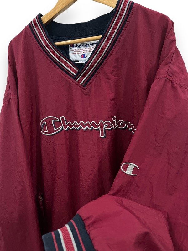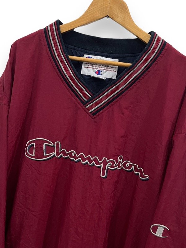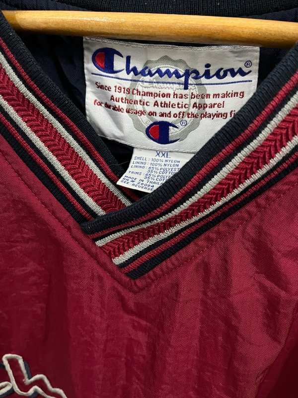 ÉPICO BUZO ROMPEVIENTOS CHAMPION VINTAGE. COLOR BORDEUX SÚPER ÚNICO CON LOGO GRANDE BORDADO Y LOGO EN LA MANGA BORDADO TAMBIÉN. CINTURA AJUSTABLE. TIENE BOLSILLOS LATERALES CON CIERRE Y ES IMPERMEABLE. ESTA IMPECABLE COMO NUEVO Y ES ORIGINAL.