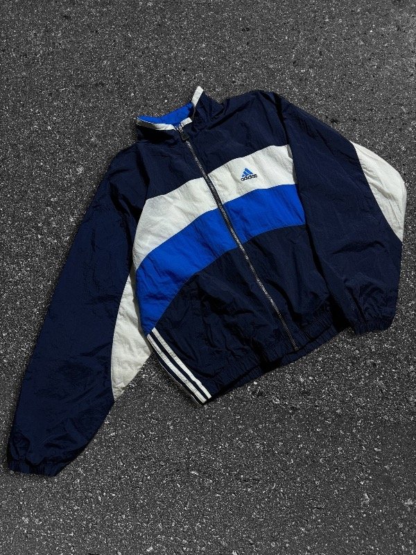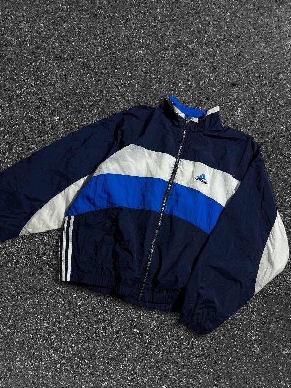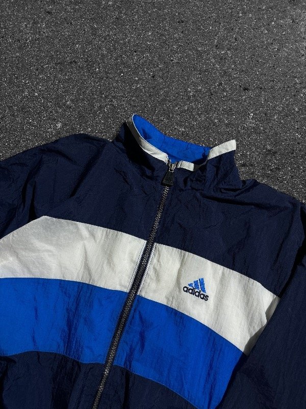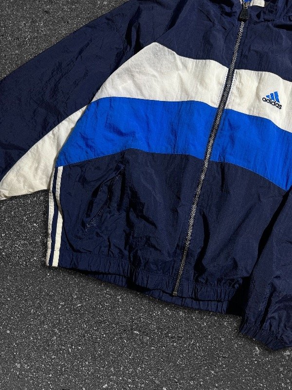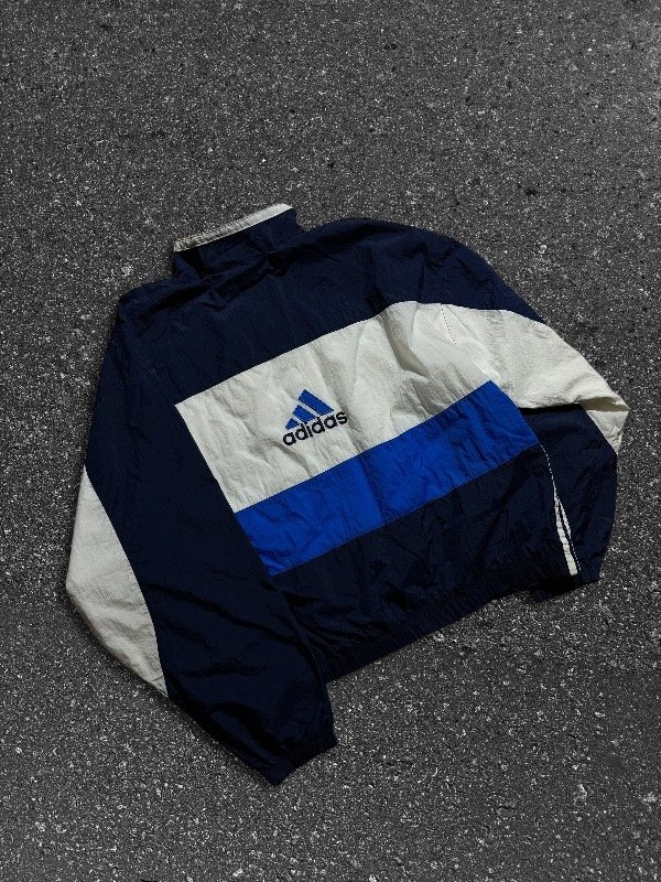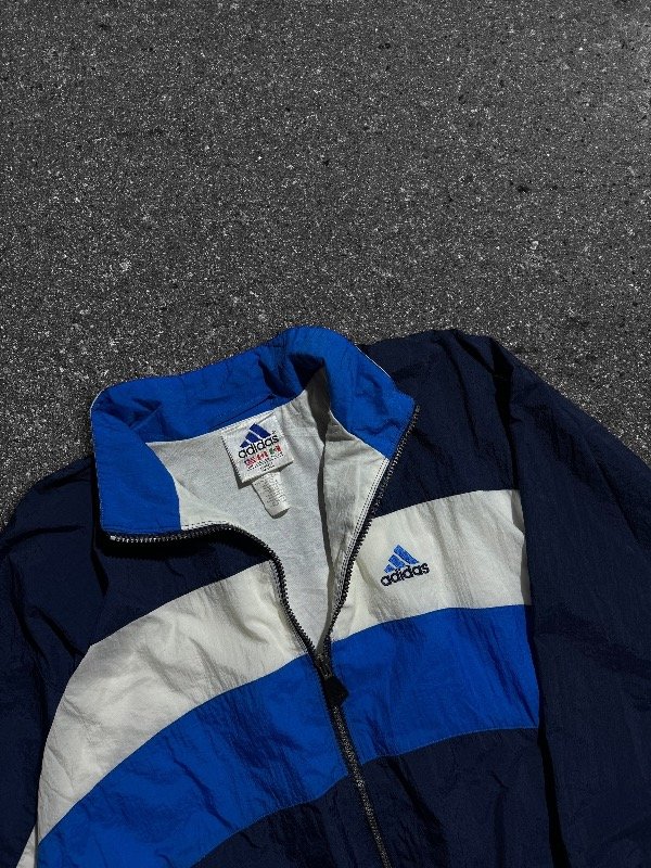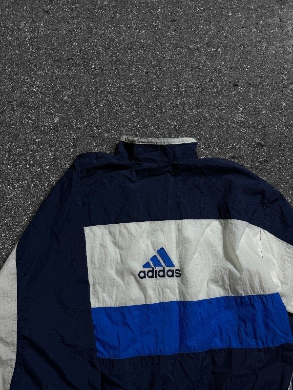 TERRIBLE CAMPERA ADIDAS ROMPEVIENTOS VINTAGE ORIGINAL E IMPORTADA IMPECABLE CÓMO NUEVA SIN NINGÚN DETALLE, TREA TIRAS AL COSTADO. LOGOS BORDADOS. BOLSILLOS LATERALES. UNA JOYA.