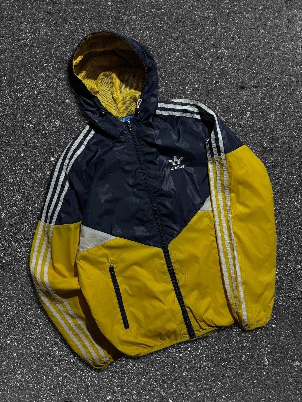 TREMENDA CAMPERA ADIDAS ROMPEVIENTOS TREFOIL ORIGINAL E IMPORTADA EN PERFECTO ESTADO SIN DETALLES. LOGO BORDADO. CIERRE ORIGINAL. BOLSILLOS LATERALES. LA ETIQUETA DICE XS PERO ES MUCHO MÁS GRANDE COMO UN M, CHEQUEAR MEDIDAx