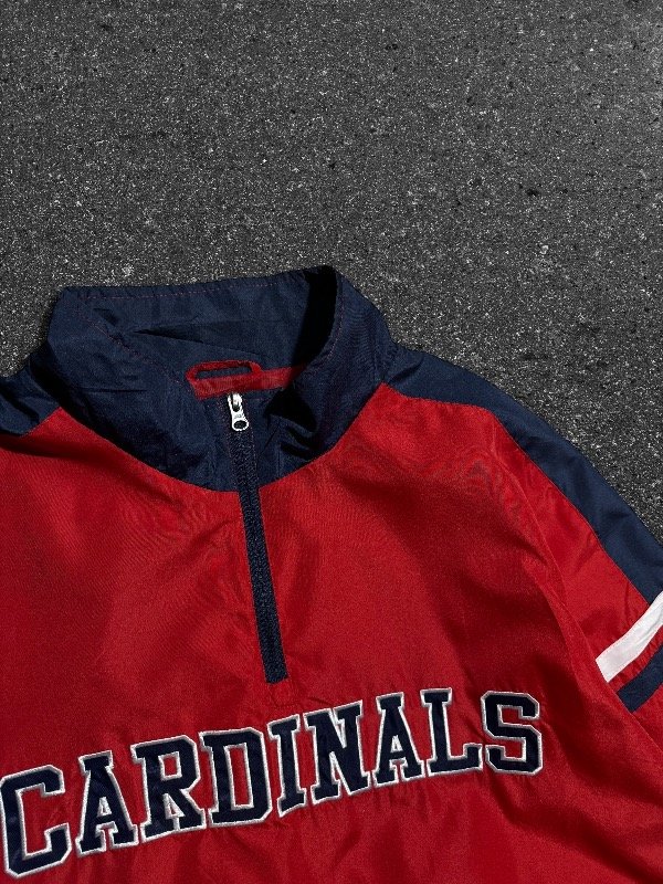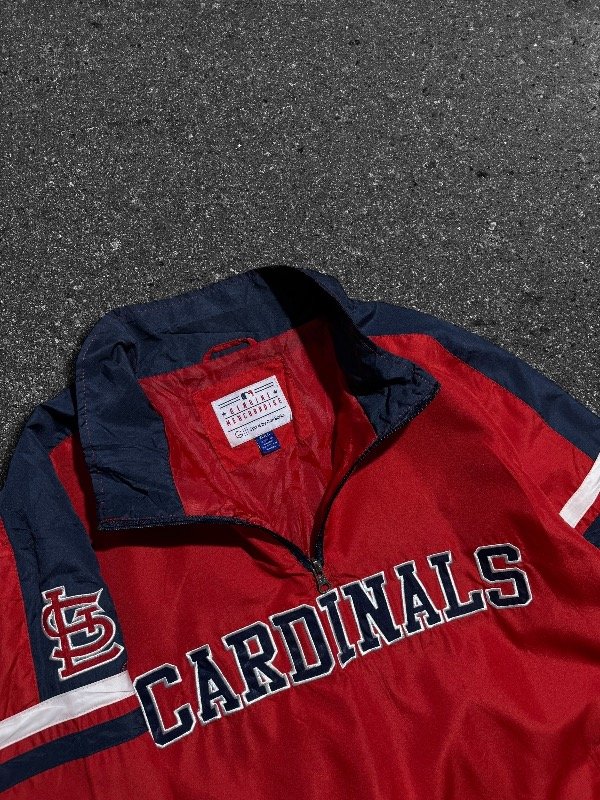 TREMENDO ANORAK ROMPEVIENTOS MLB DE LOS CARDINALS ORIGINAL E IMPORTADO EN PERFECTO ESTADO SIN DETALLES IMPECABLE. LOGOS BORDADOS. CIERRE LATERAL.
