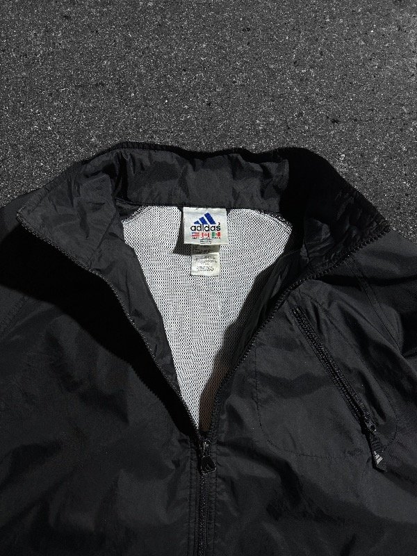 UNA LOCURA DE CAMPERA ADIDAS 1990s BLUE LABEL ORIGINAL VINTAGE. LOGOS BORDADOS. BOLSILLOS LATERALES. TIRANTES ORIGINALES. UNA JOYITA.