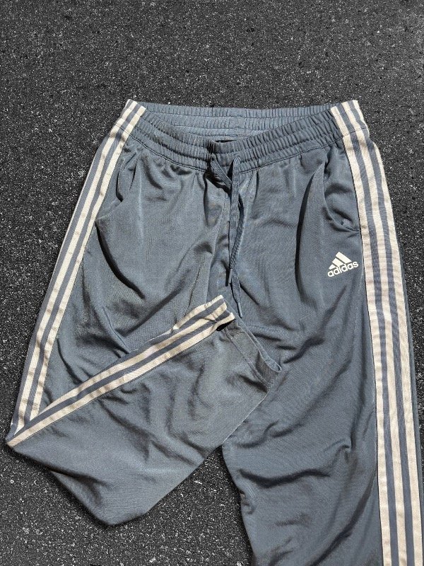 TREMENDO PANTALÓN ADIDAS ORIGINAL E IMPORTADO EN PERFECTO ESTADO SIN DETALLES IMPECABLE ESTADO. ÉPICO COLOR TIPO CELESTE/GRIS O CELESTE CENIZA. BOLSILLOS LATERALES CON CIERRE. BOTAMANGA CON CIERRE UNA JOYITA.